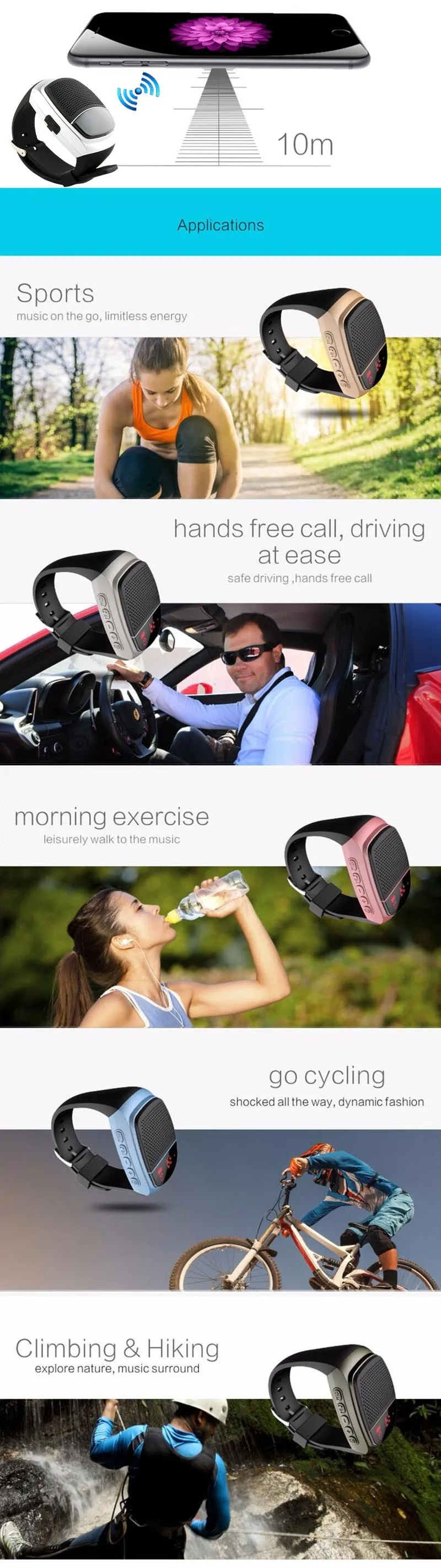 6.Sports Music watch Speaker with TF card playing mp3/wav format music