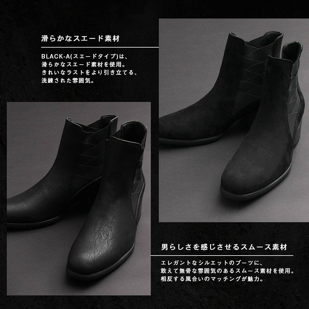 | 商品名 | サイドゴアブーツ サイドゴア ヒールブーツ ヒール メンズブーツ メンズ ブーツ ロック ヴィジュアル系 ハイヒール 脚長 身長 モード キレイめ |
