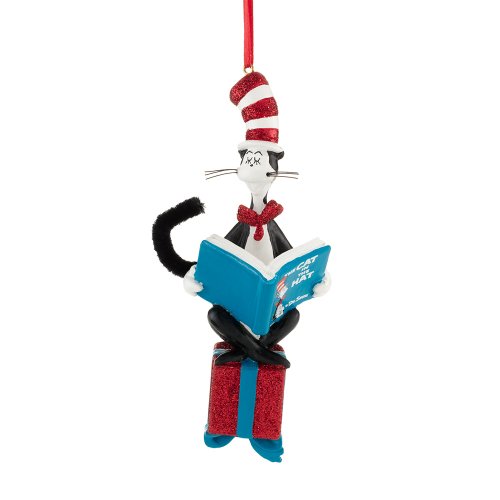 Department 56 Dr. Seuss Cat Reading on Present Ornament, 5 inch
