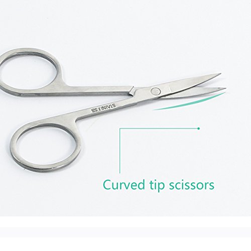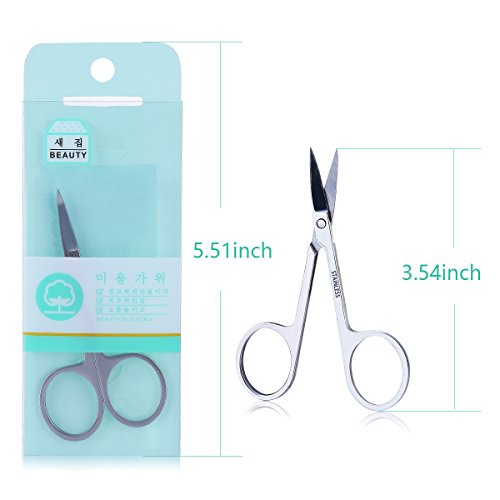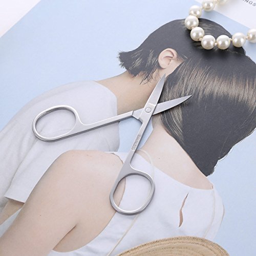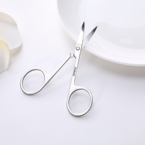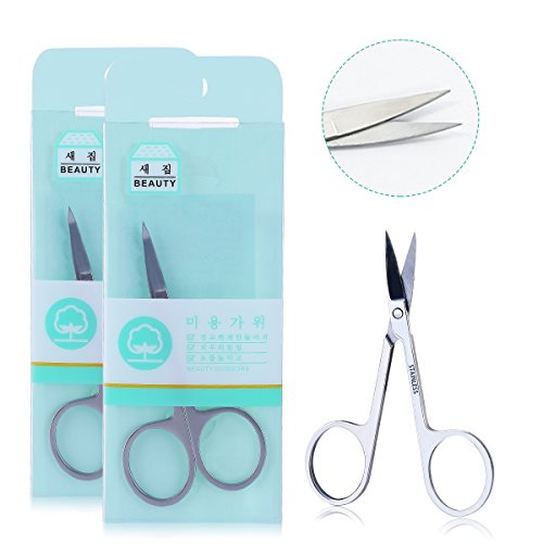 Eyebrow Hair Scissors-Small Stainless Steel Makeup Scissors ,Facial Hairs and False Eyelashes Hair Removal MakeupTools (2PCS Curved Sharp Tips Scissors )