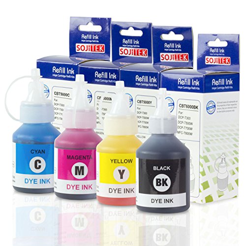SOJITEK Brother Compatible 4 Refill Dye Ink Kit BT6000BK BT6000C BT6000M BT6000Y (Black 115ml , Cyan Magenta Yellow 45ml ) for DCP-T300 DCP-T500W DCP-T700W MFC-T800W Printers