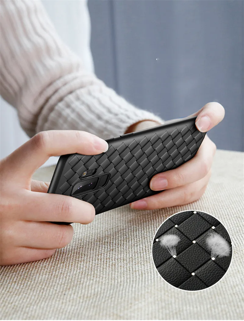 Material:Creative Luxury Grid Weaving BV Back Phone Cover