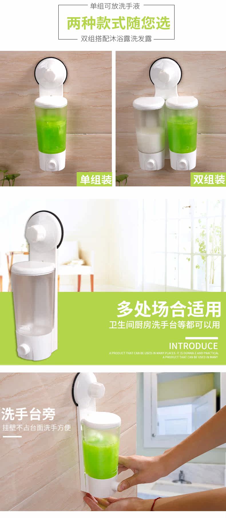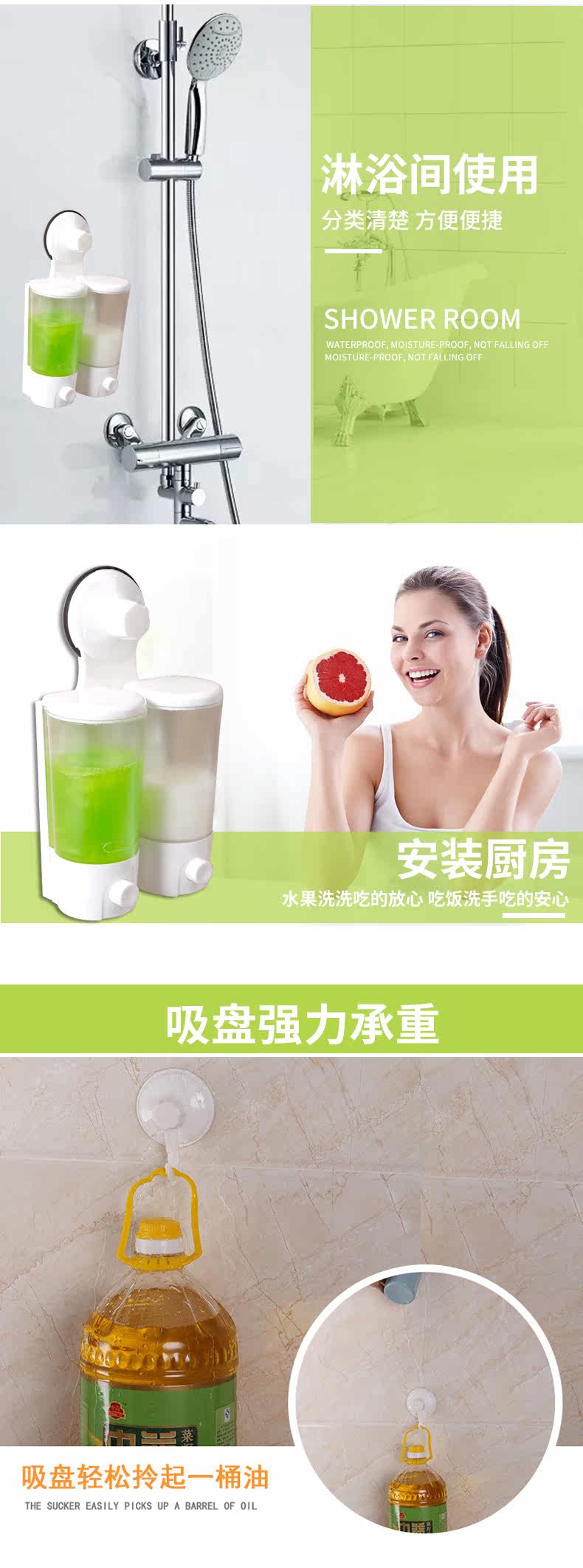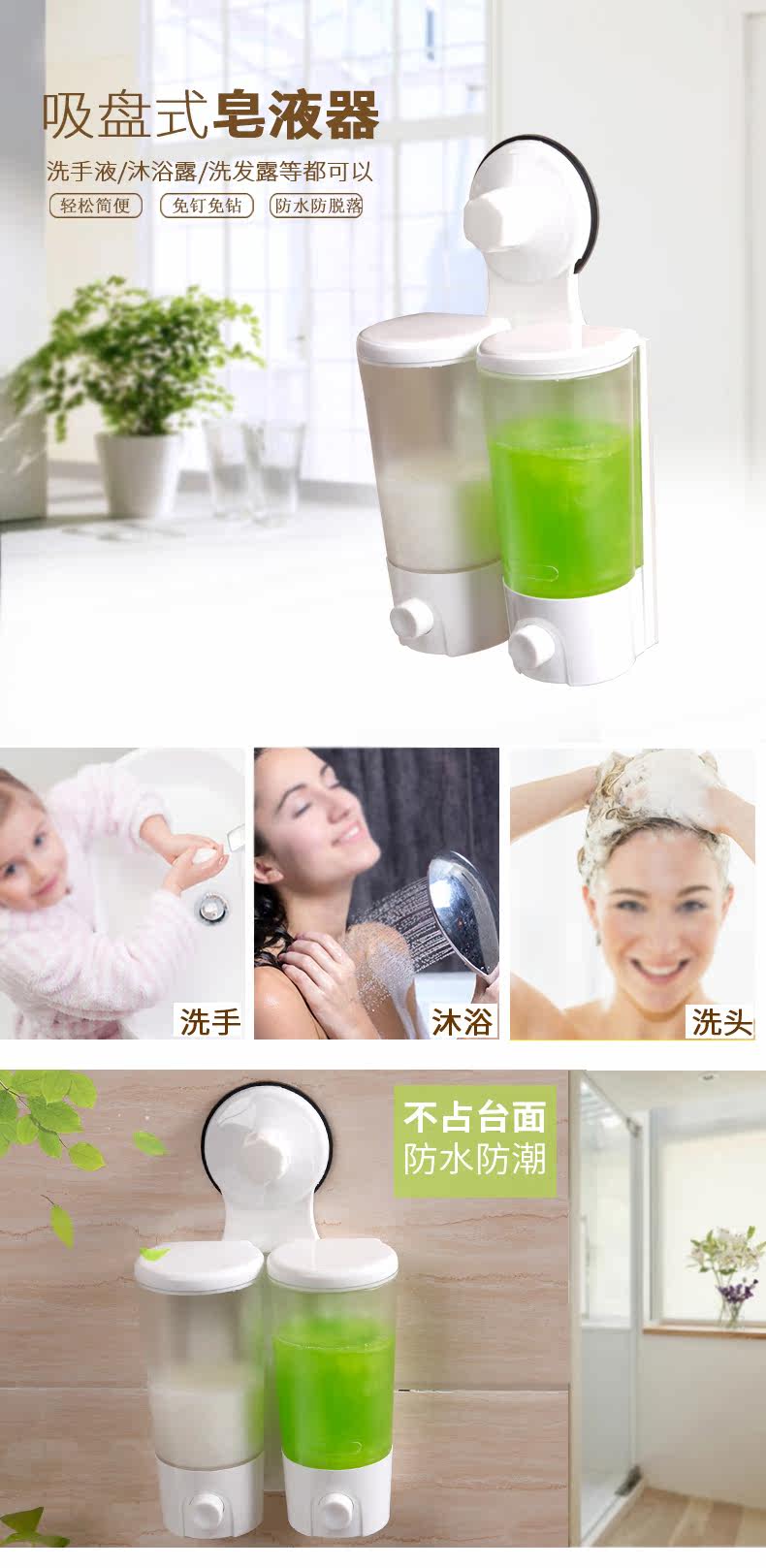 创意吸盘皂液器浴室壁挂免打孔乳液瓶沐浴露瓶子按压分装瓶子