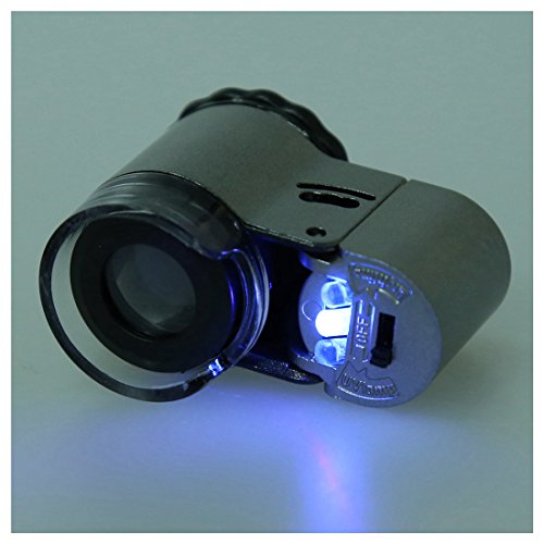 Studio : TOOGOO(R) Publisher : TOOGOO(R) Binding : Office Product Product Description * TOOGOO is a registered trademark. ONLY Authorized seller of TOOGOO can sell under TOOGOO listings. Our products will enhance your experience to unparalleled inspiration. Pocket Microscope - TOOGOO(R) 50 specialist Mini Pocket Microscope Loupe LED Microscope with lamp test function Counterfeit Color: Black lens diameter: 13 mm Product Dimensions:Approx.49 x 36 mm Magnification power: 50X Number of LED: 3 LEDs Light color: white / blue Battery: 3 x LR1130 button battery (included) package: 1 x pocket microscope 1 x User Manual 1 x Protective Case Note:Light shooting and different displays may cause the color of the item in the picture a little different from the real thing. The measurement allowed error is /-1-3 cm. 0
