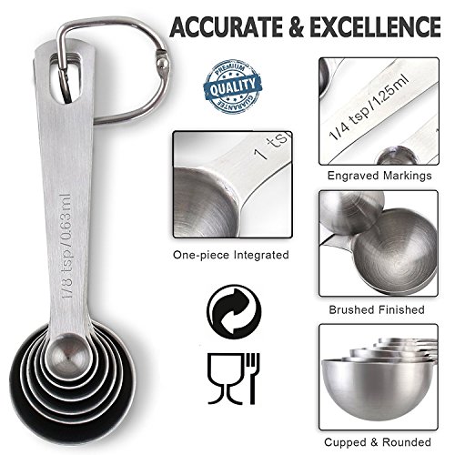 - 1 Top Rated in Measuring Spoons and Cups Amazing Quality & Polished Stainless Steel Finish – Won’t Bend, Rust or Break - manufactured in one-piece so the handle will never fall off. Dishwasher safe, FDA approved.