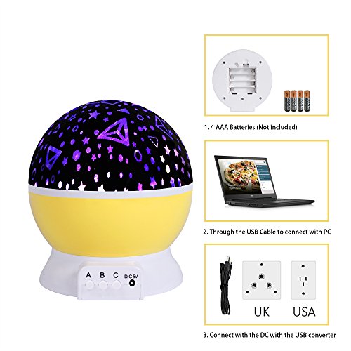 - Newest Version --- 1.There are two unique projection slides, starry and geometric figure pattern, making you feel that you were in a dream world. 2.The yellow appearance is the trend, one of the most popular colors in 2017.