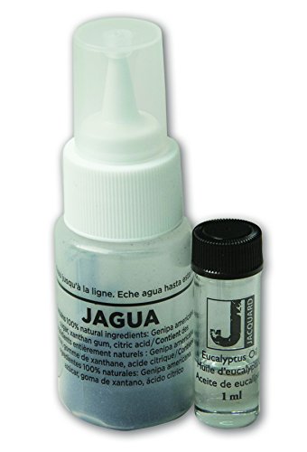 Includes one vial of jagua powder, one applicator, one fine tip, one vial of eucalyptus oil, one mixing stick, one sheet of transfer paper, one packet of transfer cream and instructions