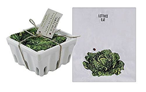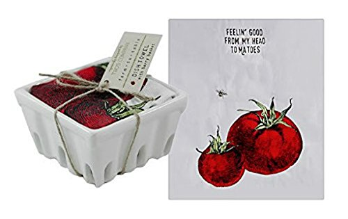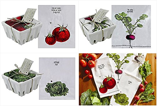 Farm To Table Dish Towel Hostess Gift Set 3 in Individual Ceramic Fruit Crate - Designs Feeling Good Head To-Ma-Toes, Lettuce Eat, You Look Radishing