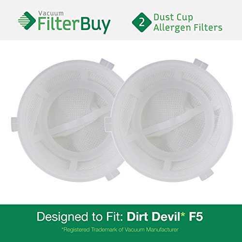 [Product Information]- 2 - Dirt Devil F5 Dust Cup Replacement Filters. High Quality washable & reusable dust cup filters designed to fit Dirt Devil Scorpion Hand Vac models 08200, 08201X, 08210, 08215X, 08220X, 08225X, 08226X, 0871, 0871X & SD20005RED.