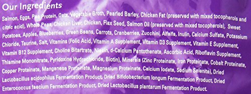 • Natural dry dog food features wild salmon, whole egg and a bounty of farm-raised vegetables