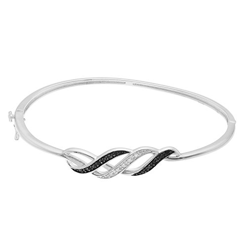 Adorn your wrist with this sterling silver fashion bangle bracelet with 1/10 cttw black and white diamonds