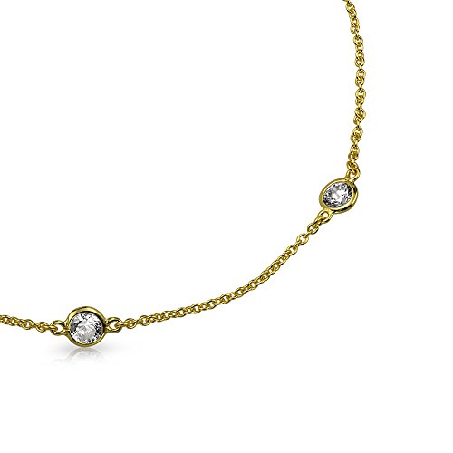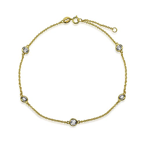 Explore your wild side with this flirtatious ankle bracelet. The gold plated sterling silver chain features a spring ring clasp and a 1 inch extender. The chain has bezel set czs that add that extra glimmer as it rests around your ankle. Spoil yourself with this sterling silver anklet. This affordable ankle bracelet will make a great gift for a special friend.Feature