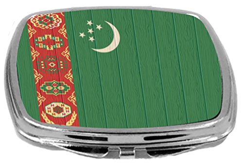 Rikki Knight Compact Mirror on Distressed Wood Design, Turkmenistan Flag, 3 Ounce