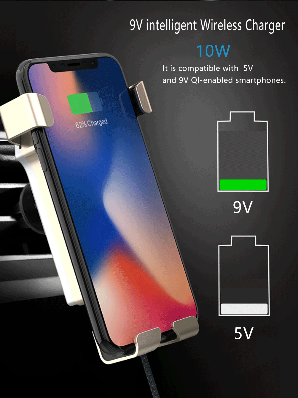feature 5:Fast Charging Car Mount Qi Wireless Charger