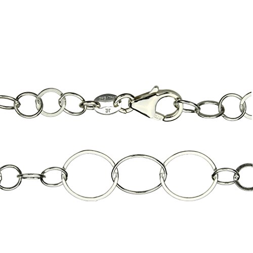 925 sterling silver three large and ten small circle links. Links are approximately 10mm and 5mm in diameter, round wire or flattened wire. Flat links reflect lots of light. Sterling silver lobster clasp lets you shorten the necklace by attaching the lobster clasp anywhere along the chain. We imported this beautiful, new solid sterling silver chain directly from a leading Italian manufacturer. The solid sterling silver chain is marked with 925 and ITALY and the clasp is marked 925 so you know that they are of the top quality. Single strand, length is from loop end to clasp. Chain is nickel free. Gift box included, color or style may vary.Feature