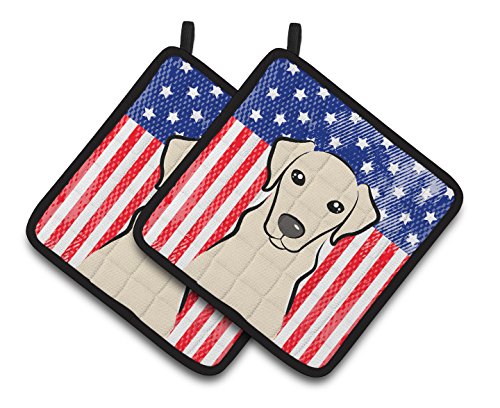 Caroline's Treasures American Flag & Yellow Labrador Pair of Pot Holders BB2152PTHD, 7.5HX7.5W, Multicolor