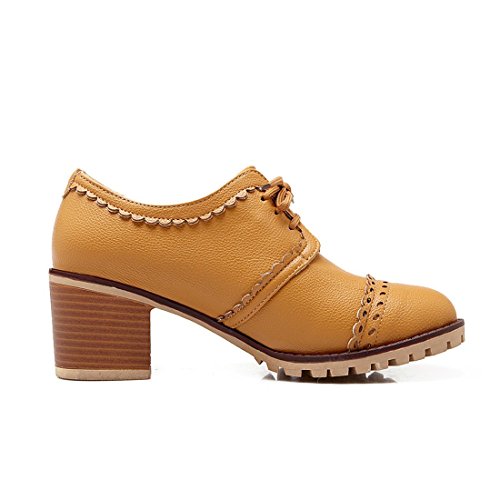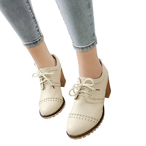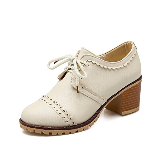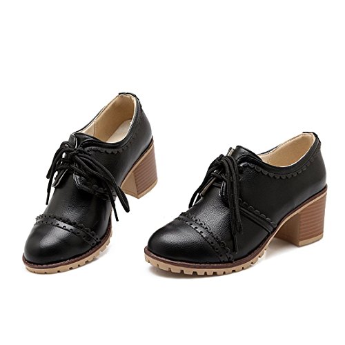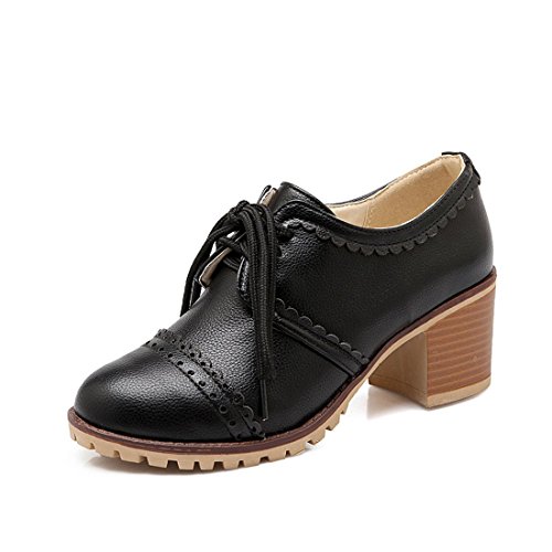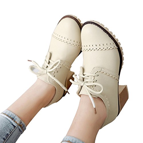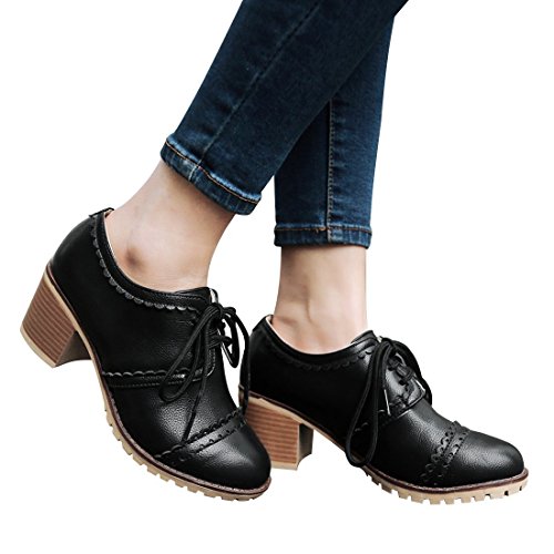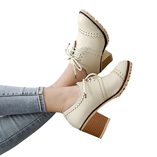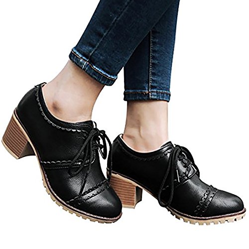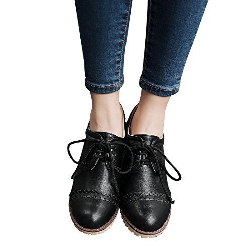 Susanny Classic Retro Pu Oxfords Brogue Shoes Women's Mid-heel Wingtip Lace Up Dress Shoes