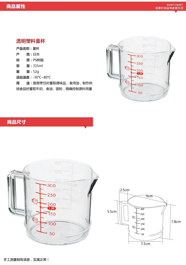 Japan imports inomata plastic measuring cup measuring cup with a scale measuring cup baking bakeware 300mlColor: Transparent