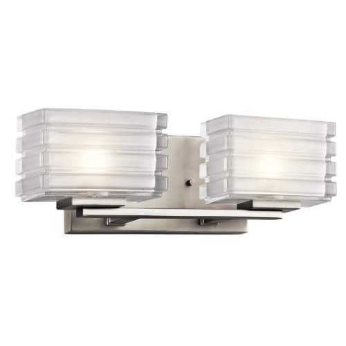 - Brushed Nickel finish with Etched White glass shades and Clear Glass diffuser