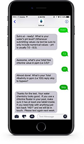-. Feature : Tests pH & Free Chlorine/ Bromine. / No more calculations required / Automated 'bot' to calculate your chemistry values / No app download required -- all done via text message