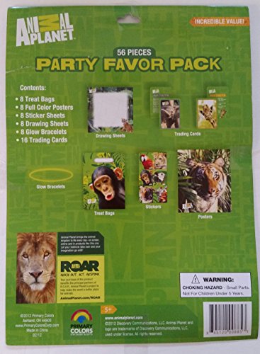 -. Feature : Roar Animal Planet Kids Children Birthday Party Pack bundle ,Service for (8) people / 16 paper cake plates, 16 paper cups, 32 napkins, and 2 Centerpieces , and 56 pieces party favor pack / Favor pack includes: 8 treat bags, 8 posters , 8 sticker sheets , 8 drawing sheets / 8 Glow bracelets , 16 trading cards / For ages 5 and above