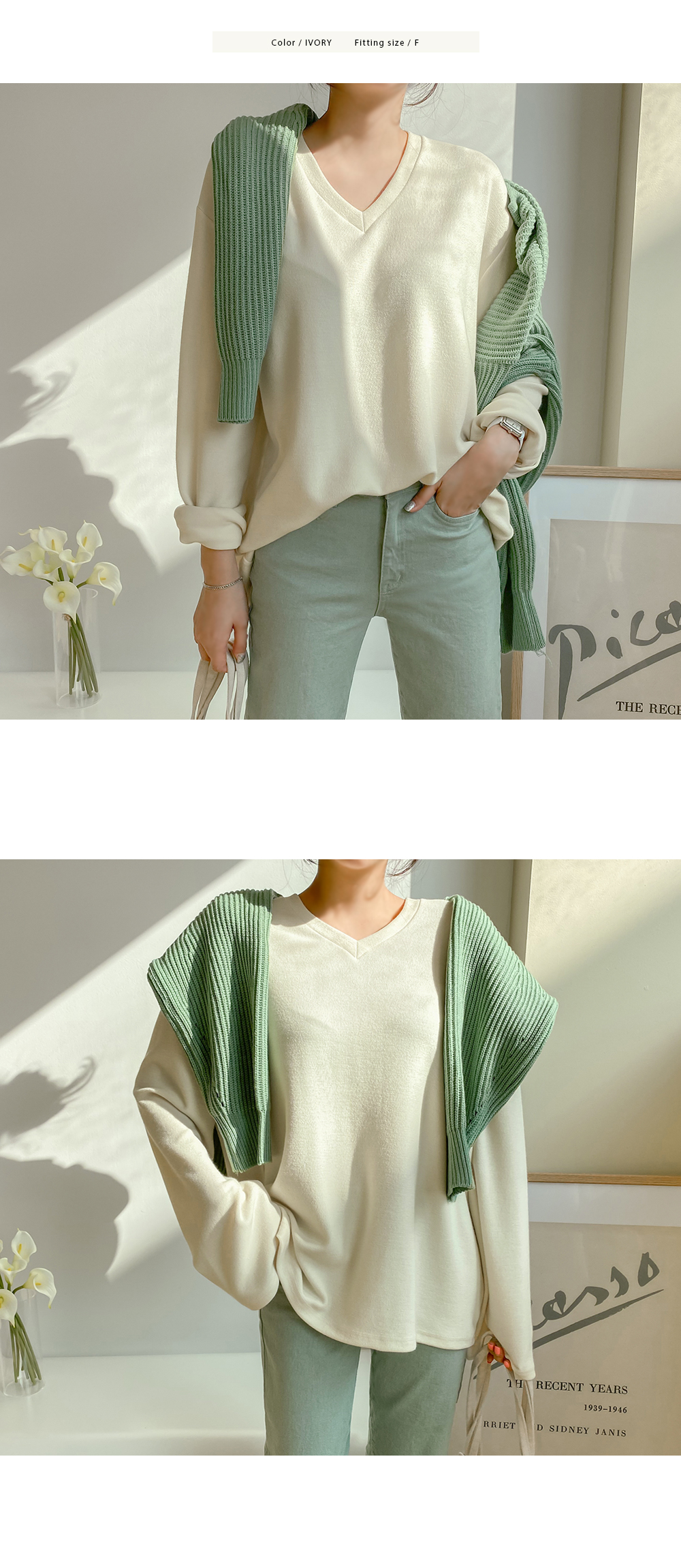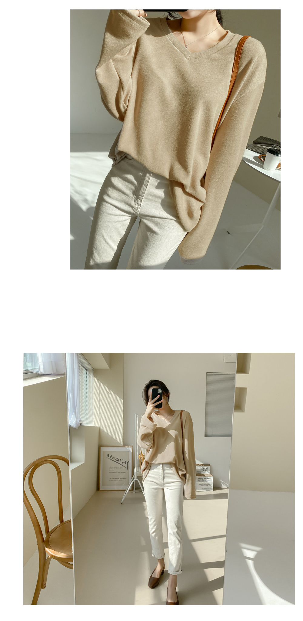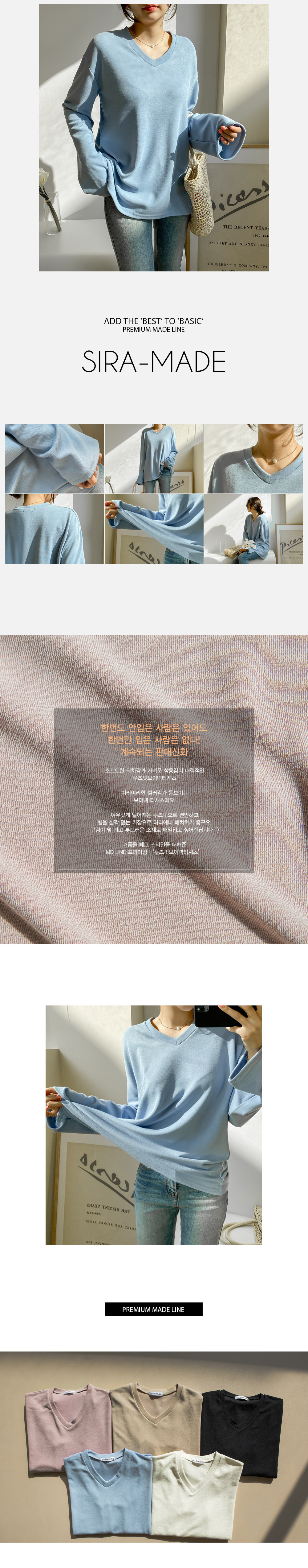 적당한 깊이감으로 예쁘게 파진 브이넥은