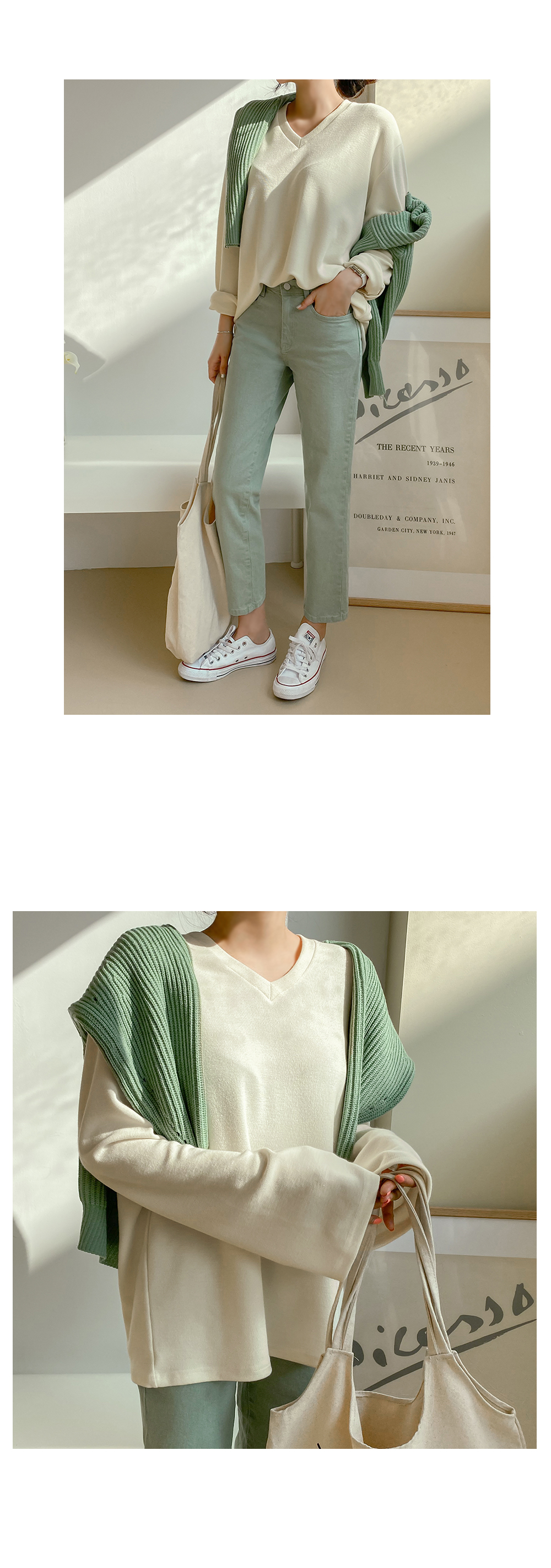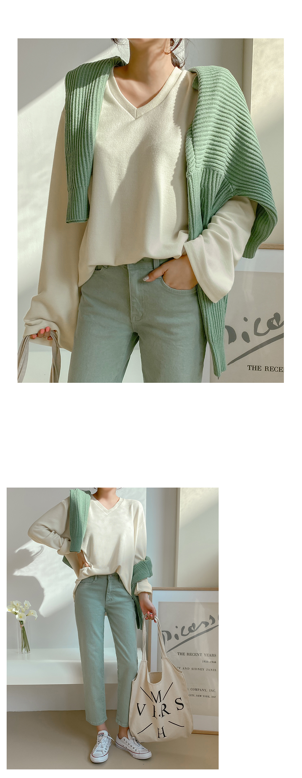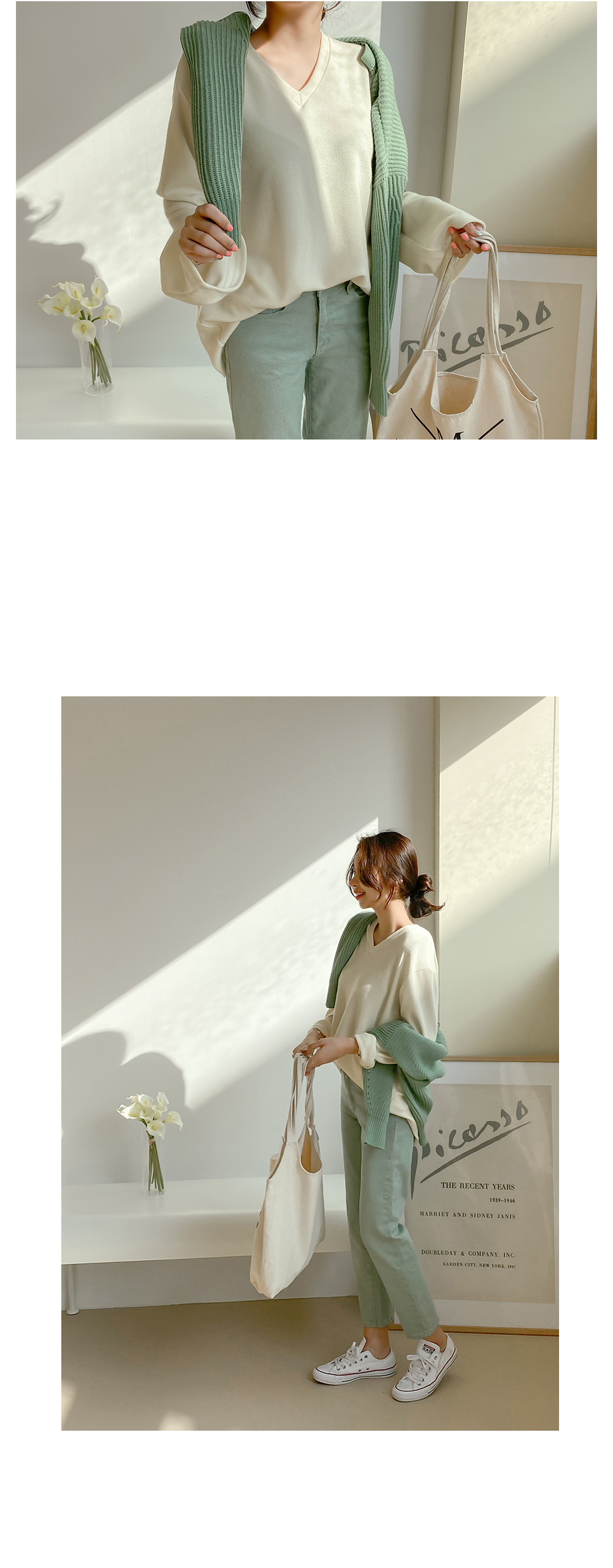 적당한 깊이감으로 예쁘게 파진 브이넥은