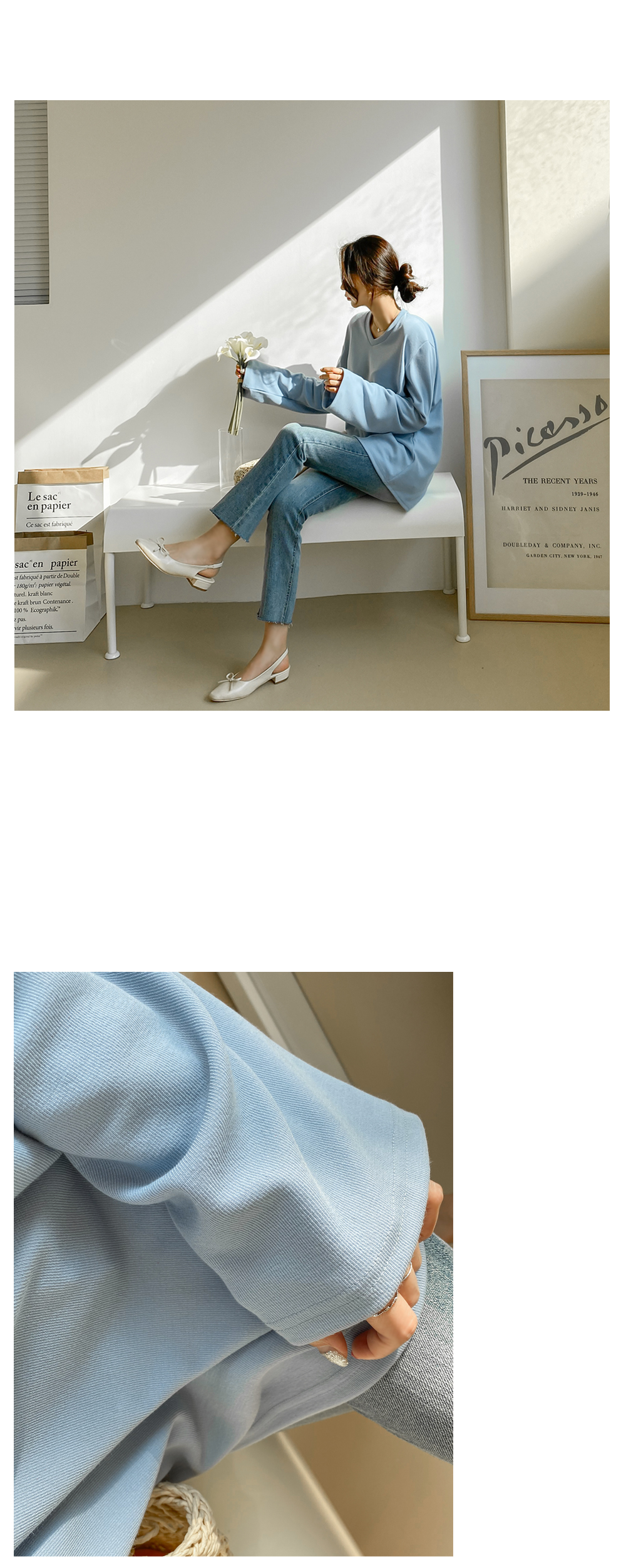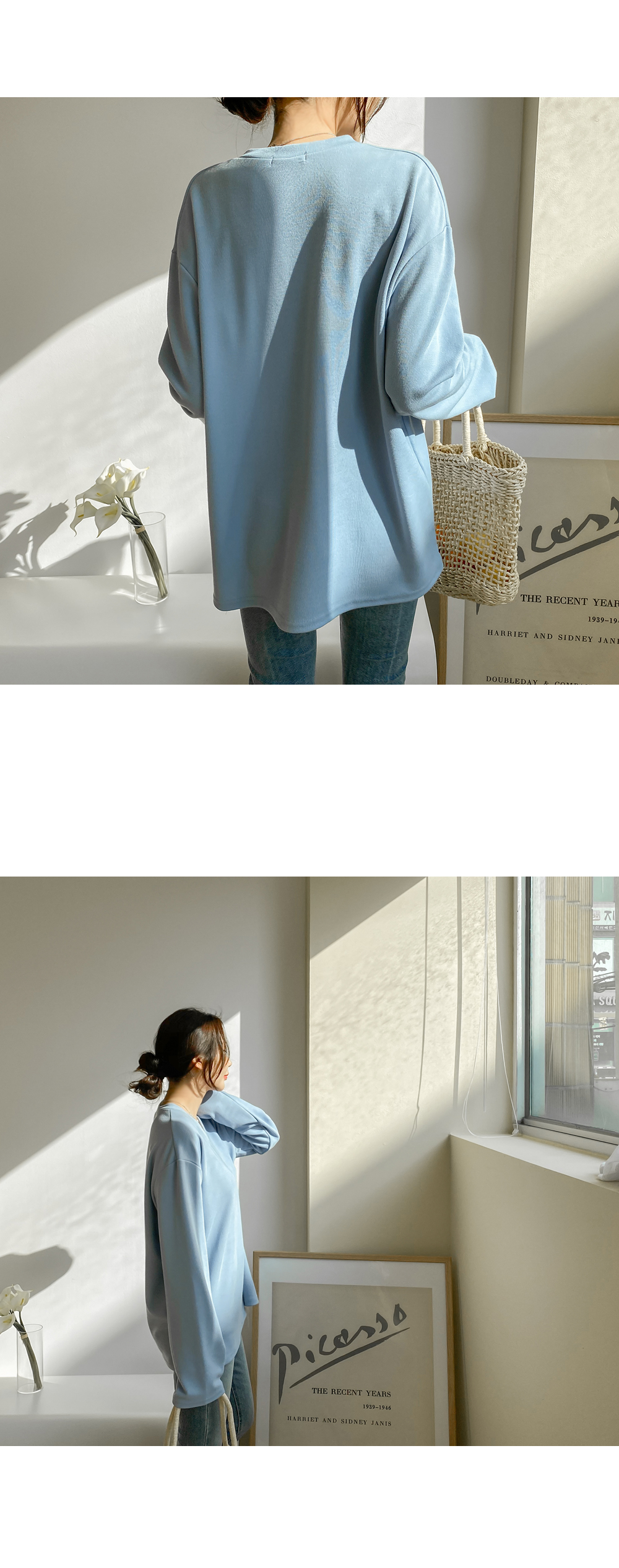 엉덩이를 살포시 가려주는 기장감과 와이드한 소매로