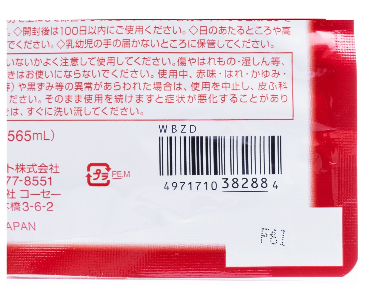 · When using abnormalities such as redness, swelling, itching, irritation, etc. during use, discontinue use and consult a skin specialist etc.