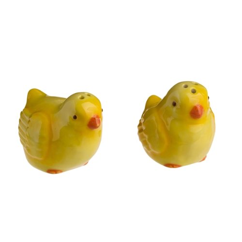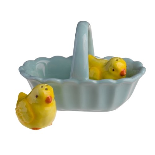[Product Information]- Yellow chick salt and pepper shakers fit perfectly in blue ceramic basket