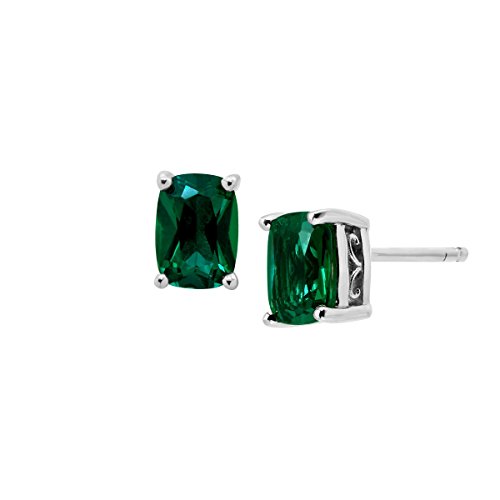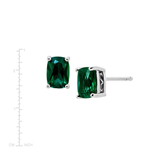 Pair these simple studs with your favorite wardrobe pieces for a bold look you'll love. Rectangular cushion-cut created emeralds, totaling 1 1/2 ct, are crafted in a setting of sterling silver and finished with posts with friction-backs. Pieces measure 1/4 by 3/16 inches.Feature