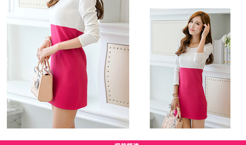 Long Sleeves Round Neck Mixture Rose Pink & White Color Midi Dress