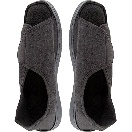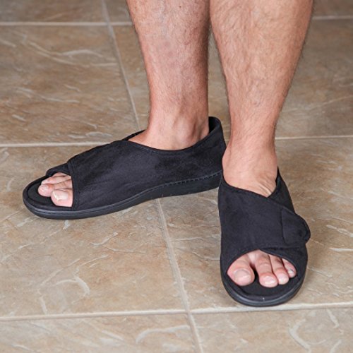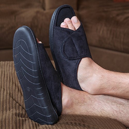 -. Feature : OPEN TOE DESIGN - If sore or sensitive toes, arthritis or swelling make your feet hard to fit, you'll love these fully adjustable open-toe slippers. / ADJUSTABLE FIT - The hook-and-loop flap opens wide for easy on and closes to accommodate most any width, arch height and comfort desired. / MEMORY FOAM - Thick memory foam foot beds pad your every step. / 4 SIZES - Choose Small (men's 6-7; women's 6½-8½), Medium (men's 7½-8½; women's 9-10½), Large (men's 9-10; women's 11-12) or X-Large (men's 10½-11½). / Home-X is a registered trademark of Simply Home Solutions.