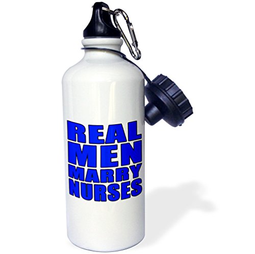 3dRose wb_223678_1 "Real Men Marry Nurses Blue" Sports Water Bottle, 21 oz, White