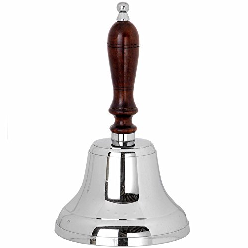 -. Feature : Silver school bell / Large chrome school hand bell / Decorative accessory / Colour: Silver/Brown / Size: 9.5"