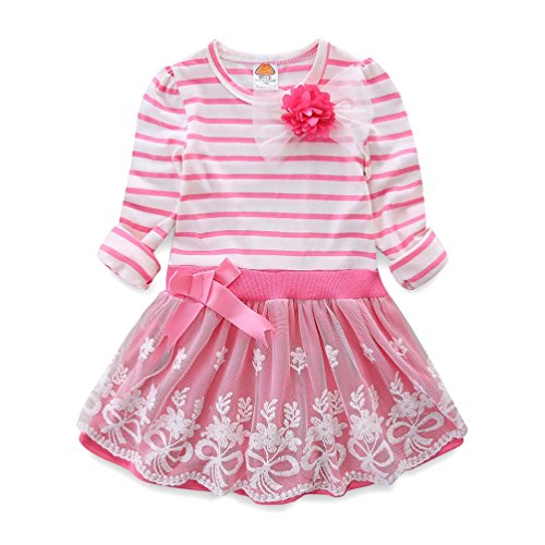 -. Title : LittleSP.R.Ing春秋 ガールズ 女の子 レース ボーダー柄 長袖ワンピース リボン付き 花飾り 切り替え ワンピース 長袖チュニック お姫様ドレス プリンセス