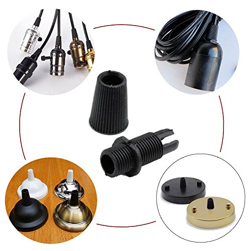 - FEATURE: These 50-Pack Black strain reliefs are standard M10 strain reliefs, They thread into the base of any standard light socket (or use a nut to fasten them to anything, like a ceiling canopy mount) and when you screw on the cap, they tighten up onto your cord: holding the weight off of your wire connections inside your socket or ceiling canopy. No more struggling to tie knots or use cumbersome crimps inside your socket