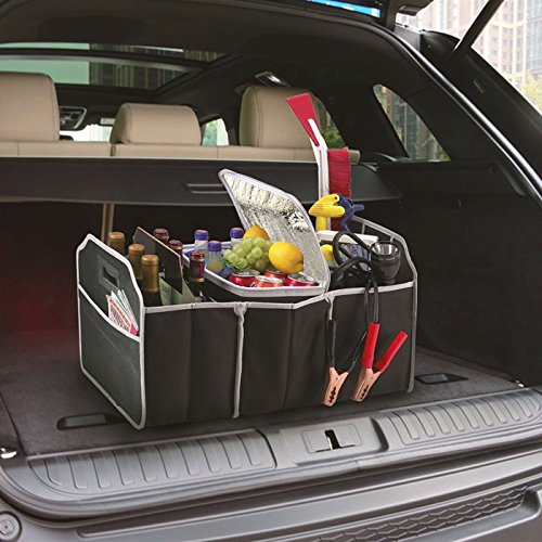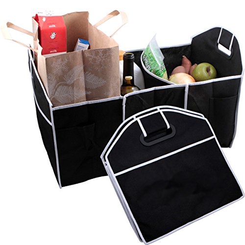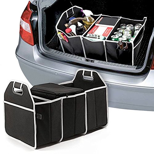 New Luxury Auto Car Trunk Organizer Caddy w/ Pockets and Dividers | Large, Durable, Expandable and Collapsible Travel Storage Bag w/ Handles