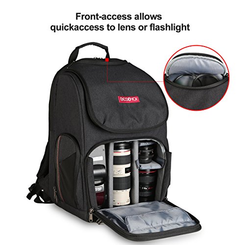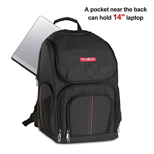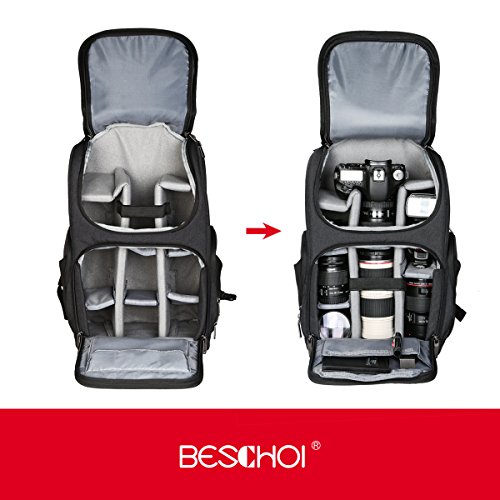 Beschoi Camera Backpack Gear Shockproof Waterproof Backpack for SLR/DSLR Cameras Hold Multiple Lenses, Flashlight and 14" Laptop Camera Waterproof Bag Black