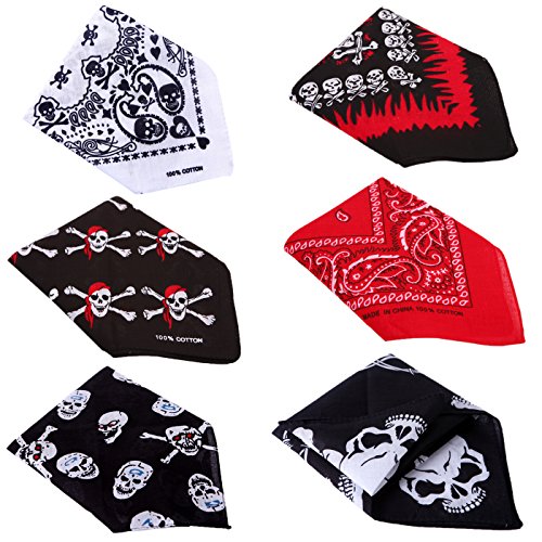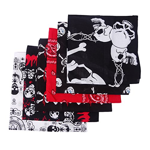 -. Title : HDE Variety Print Bandanas [Skulls and Paisley] Head Wrap Doo Rag (6 Pack)