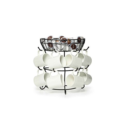 • Features 8 hooks to hang mugs and a wire basket on top for extra storage