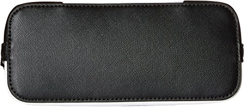 Color-blocked saffiano-textured faux-leather exterior. Pale gold-tone hardware.
