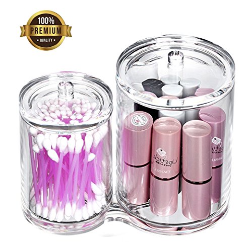 ★ PERFECT CONTAINERS for Bathroom: Space-saving storage for cotton balls, cotton swabs, makeup pads, and other bathroom accessories. Compact design takes up minimal counter space