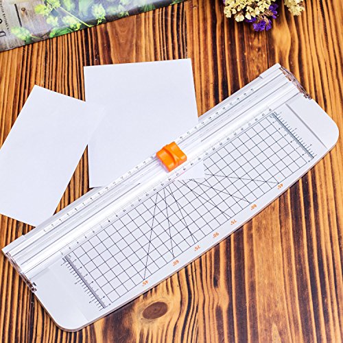 Firbon A4 Paper Cutter 12 Inch Titanium Paper Trimmer Scrapbooking Tool with Automatic Security Safeguard for Craft Paper, Coupon, Label and Cardstock (white)
