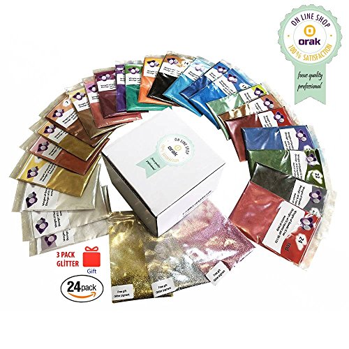 Mica powder - Soap Making Kit - Powdered Pigments Set - Soap making dye - 24 coloring - 3 Packs Glitter - Hand Soap Making Supplies - Resin Dye - Bath Bomb Dye Colorant - Cosmetic Grade - Makeup Dye