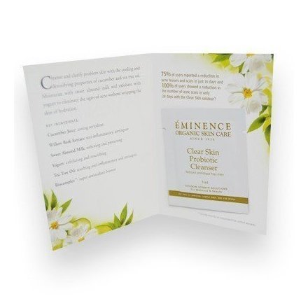 Eminence Clear Skin Probiotic Cleanser Card Sample Set of 6 Travel Size, 3 Ml Each
