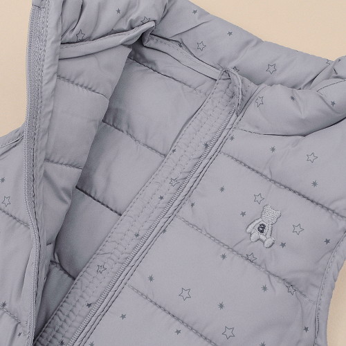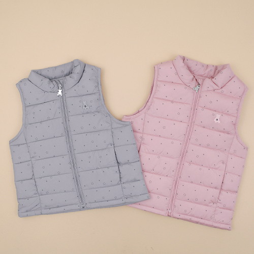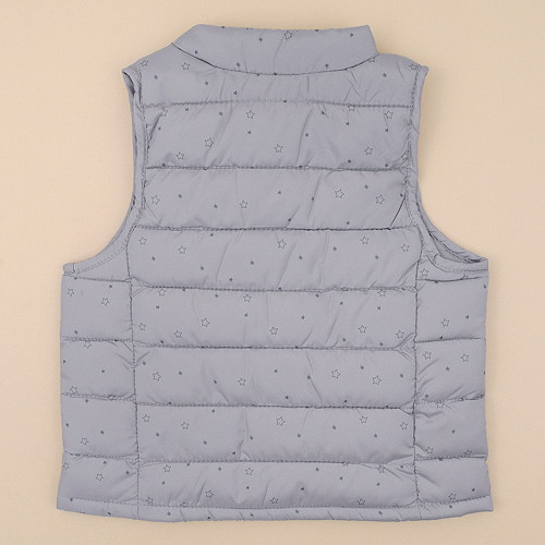 합리적인 가격으로 제안하는 경량패딩조끼입니다.잔잔한 별패턴의 부드러운 화섬원단을 사용하여 촉감이 좋습니다.추워지는 간절기에 가벼우면서도 따뜻하게 입히기 좋은 조끼로 어디에나 코디하기 좋은 머스트 헤브 아이템입니다.선물용으로도 매우 좋습니다.