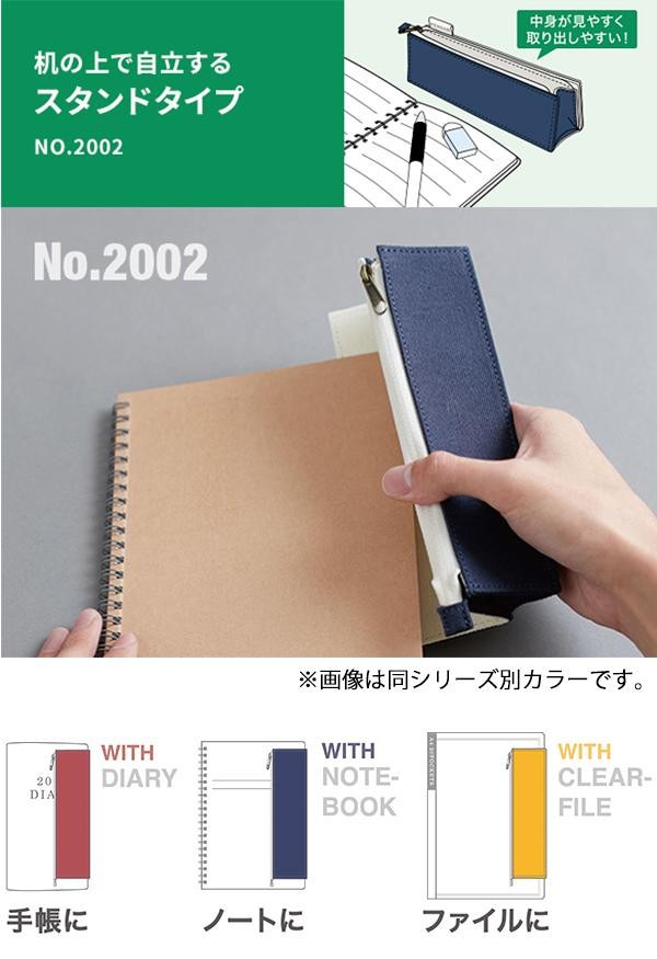 中身が見やすく取り出しやすい、机の上で自立するスタンドタイプのペンケースです。手帳やノート、ファイルなど挟む物のサイズを問わず、ワンタッチで着脱できます。 |