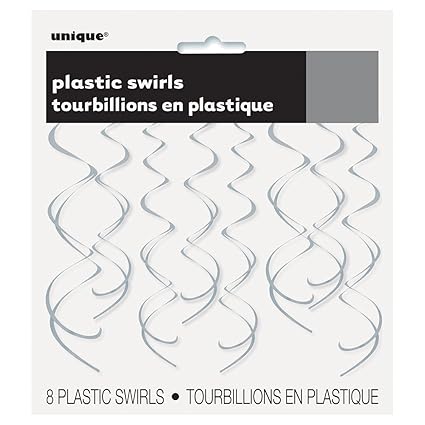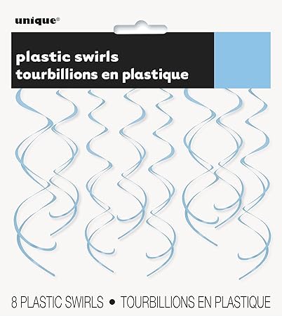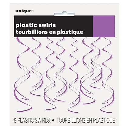[Product Information]- Package of 8 Plastic Hanging Swirl Purple Decorations