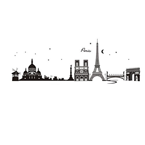 -. Feature : Product Name : Wall Stickers;Pattern : World Landmarks Buildings / Sheet Size : 60 x 90cm/ 24" x 35" (L*W);Material : PVC / Color : Black / Net Weight : 169g / Package Content : 1 x Wall Stickers